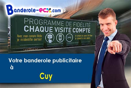 Pour annoncer vos promotions, être vue de tout el monde ou simplement pour proposer un produit rien de mieux qu'une banderole publicitaire, en effet c est le support publicitaire le plus bon marché de nos jours pour être vue a coté de chez vous. Habituellement faite en PVC mais parfois en nylon, disponible dans une large gamme, la banderole pas cher est adapter a tout type d'emploi, que se soit du court moyen ou long terme, intérieur comme la banderole publicitaire M1 anti feu avec certificat ou extérieur comme la banderole publicitaire couchée de 900 Gr du M2 pour une très longue duration avec option vernis. Elle vous permettra de faire de la publicité simplement à Cuy car elle permet de véhiculer un message ou une promotion de vos produits de façon trés économique. De plus elle est simple d'utilisation grâce aux oeillets tous les 25 cm ou aux fourreaux et vous pourrez la réutiliser chaque fois en variable la date a l'aide d'autocollants par e